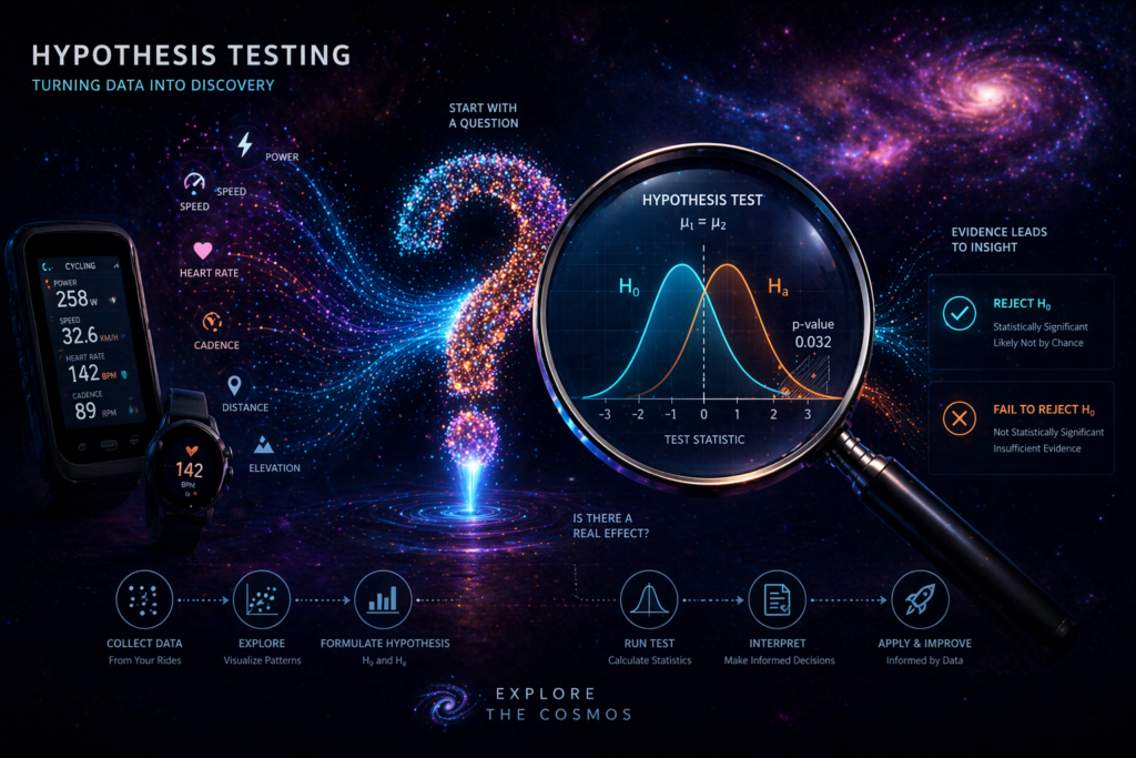 Ever felt like you’re navigating your training or a complex system with a best guess rather than a solid plan? You’ve likely encountered a situation where you had a hunch, a potential explanation for why your cycling performance plateaued, or why a particular marketing campaign didn’t quite hit the mark. This is where the power of hypothesis testing truly shines. At Explore the Cosmos, we believe in the transformative impact of data-driven analysis, and hypothesis testing is a cornerstone of that philosophy. It’s the scientific method applied to your questions, allowing us to move beyond intuition and towards validated insights. In this post, we’ll demystify hypothesis testing, explaining what it really means and how it helps us make smarter, more confident decisions, whether we’re analyzing cycling metrics or exploring complex systems.